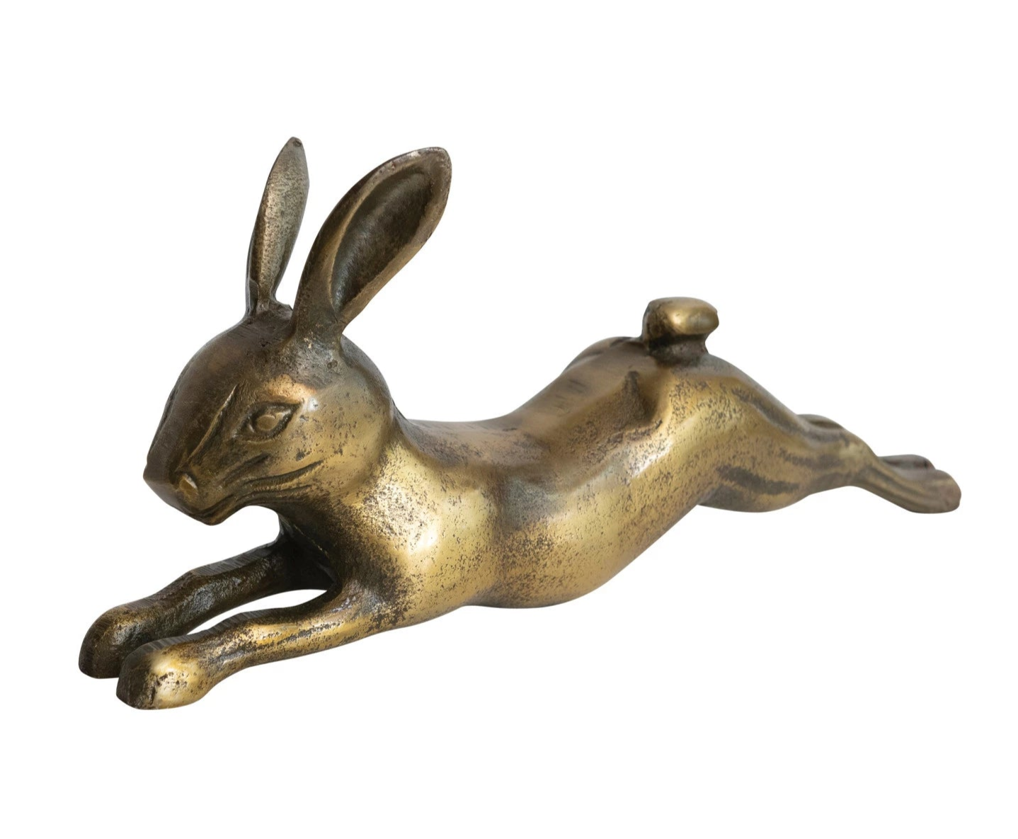 This eclectic aluminum accent features the silhouette of a rabbit in a shimmering gold finish. Add a touch of personal style to a mantel or tabletop with this decorative rabbit figurine.