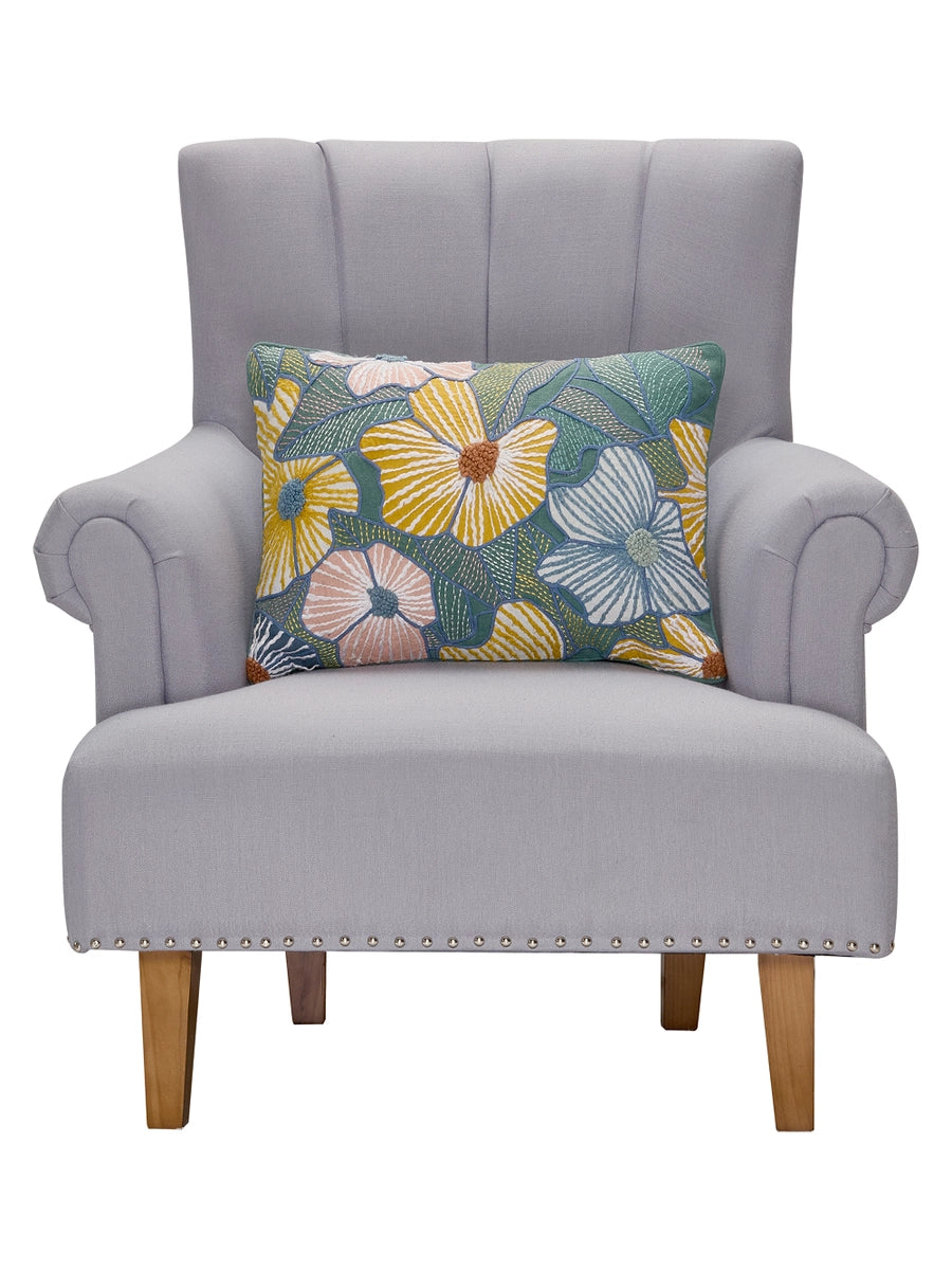 Add some charm to your decor with this handcrafted cotton pillow showcasing beautiful detailed embroidered flowers.