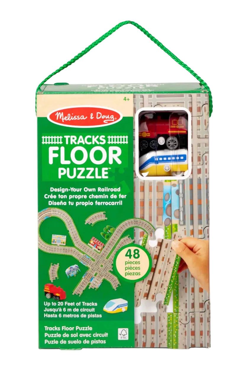 Includes 48 cardboard puzzle pieces featuring built-in track paths, 2 wind-up trains, and 4 clip-on scenery pieces that attach to layouts for endless railroad-play adventures