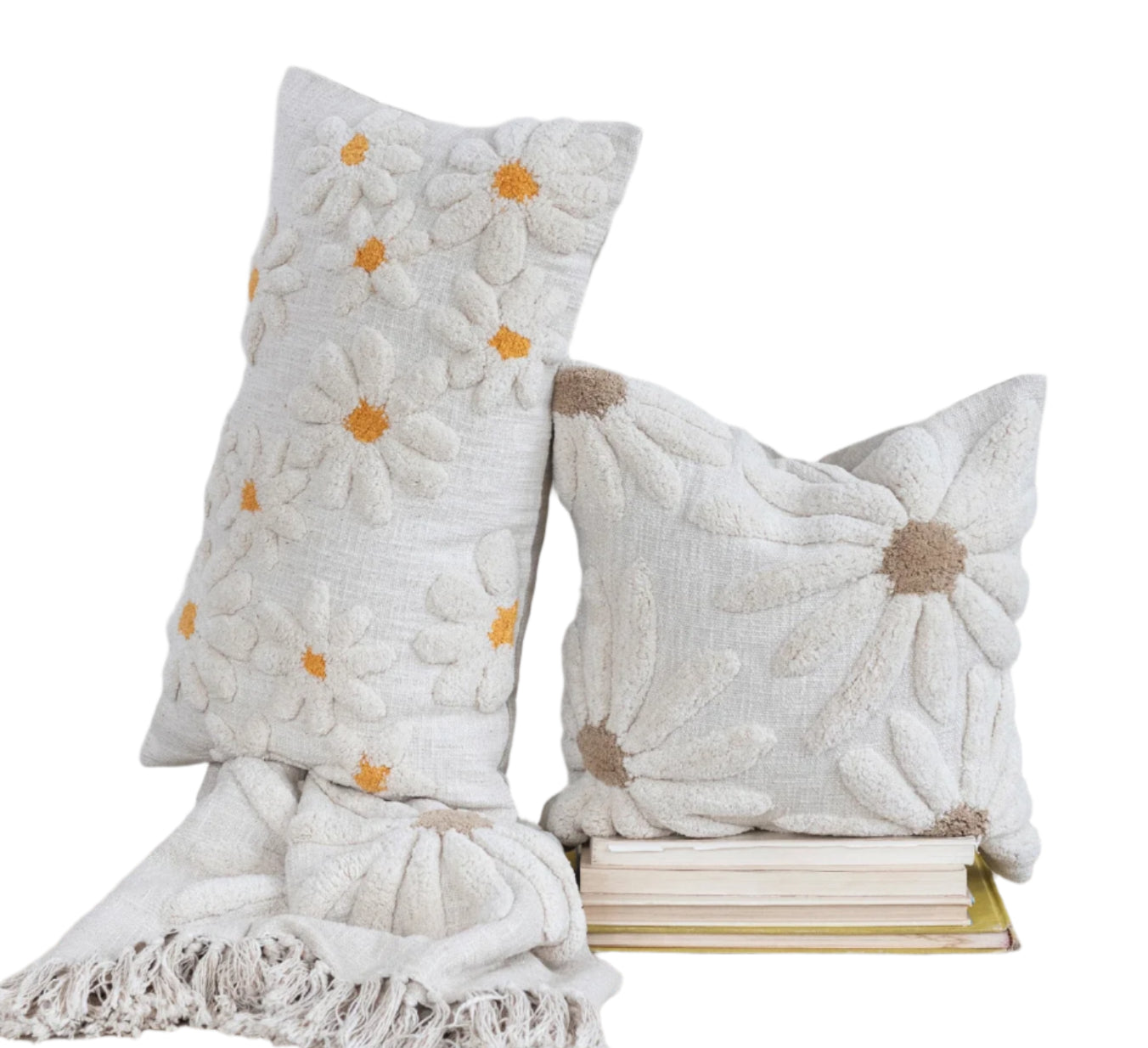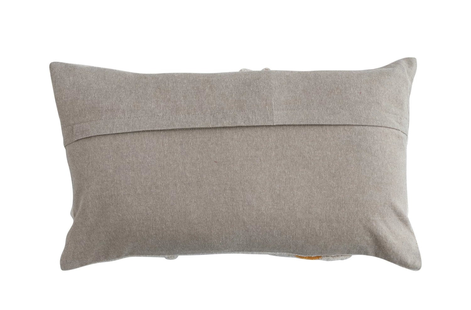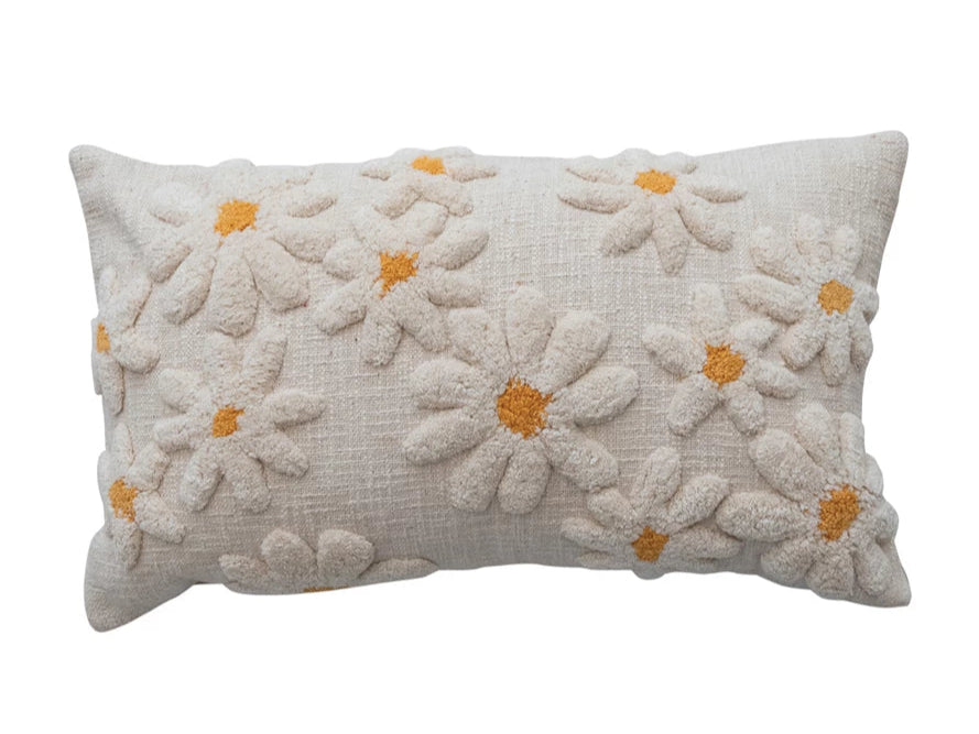 Cotton Slub Lumbar Pillow w/ Tufted Flowers, Natural & Yellow