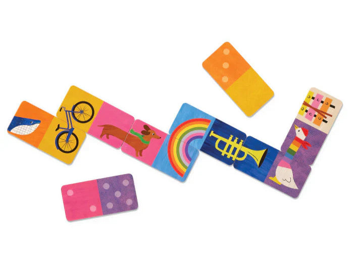 A fun classic game of dominoes with 28 two-sided dominoes and instructions.