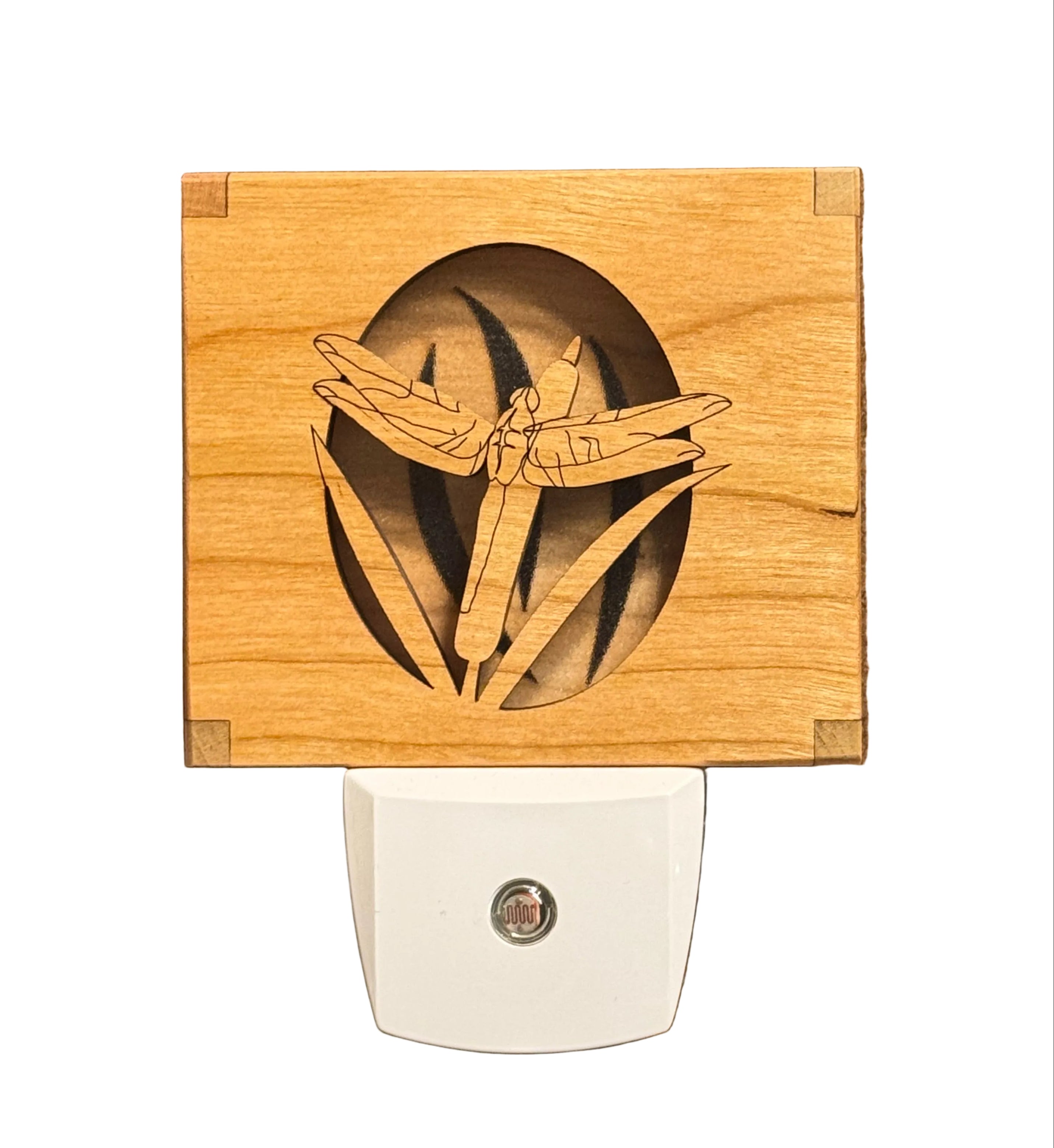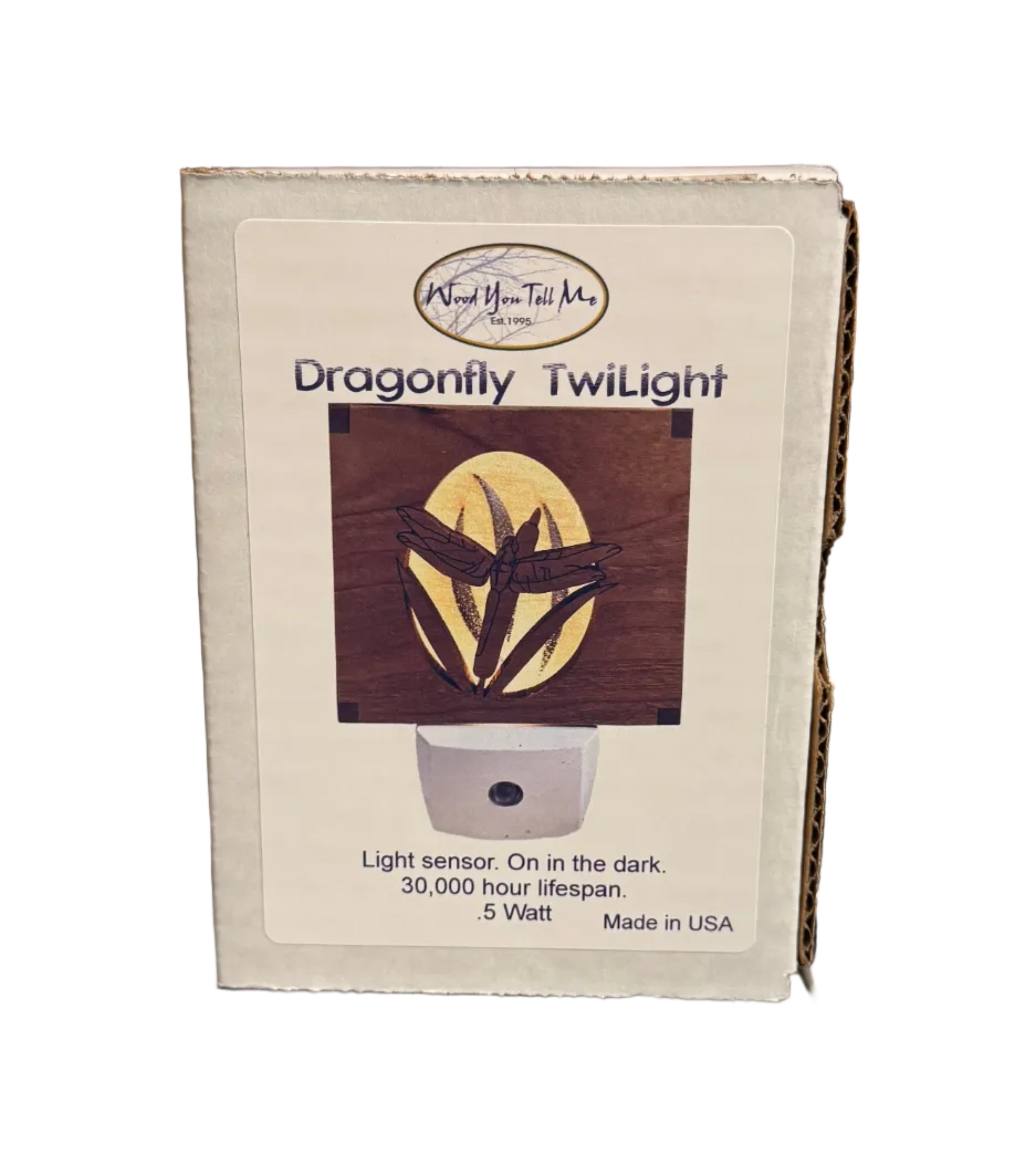 Beautiful plug-in twilight crafted from wood to give your home a comfy glow at night!