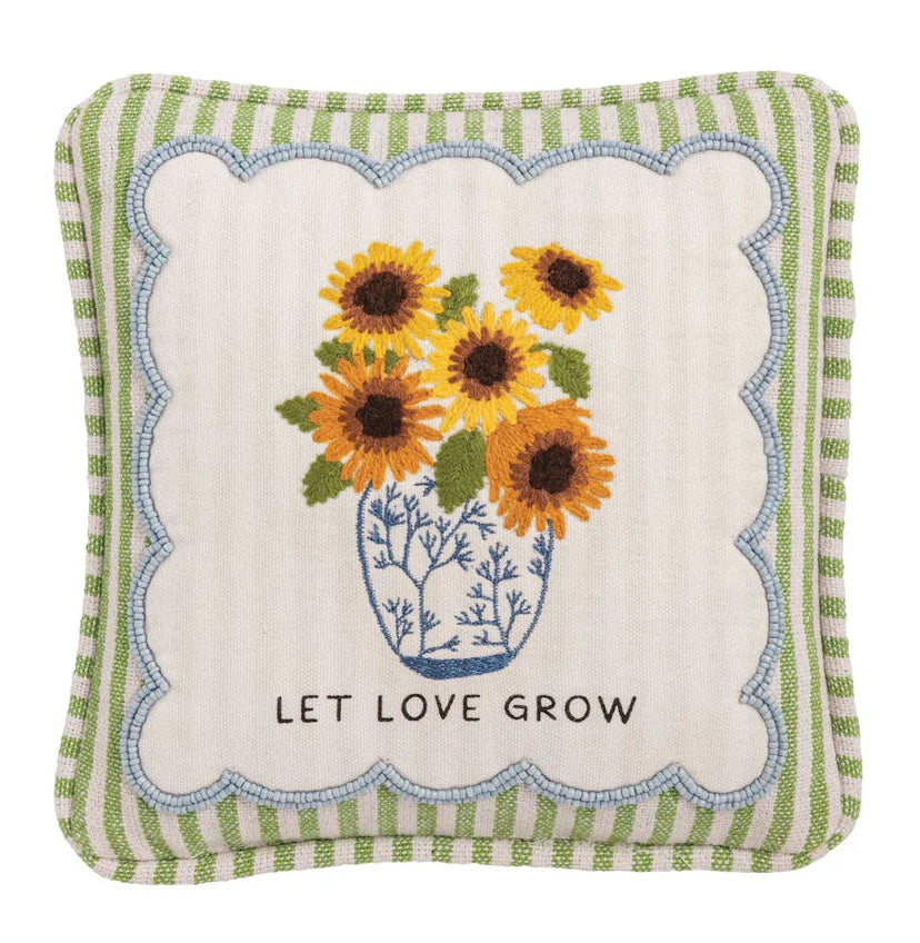 The bottom is neatly embroidered with the sweet sentiment, "LET LOVE GROW".