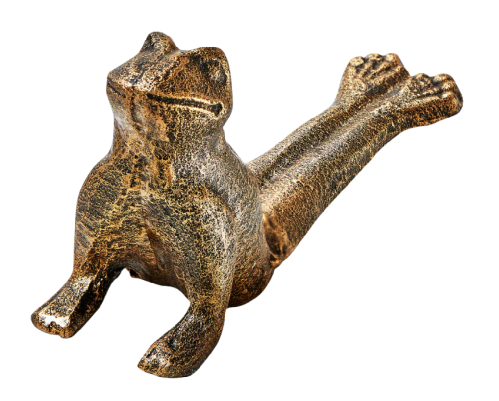 Frankie the frog will hold your door open, allowing you to enjoy the breeze. This antique brass cast iron doorstop can also be used as decorative decor. Wipe clean.