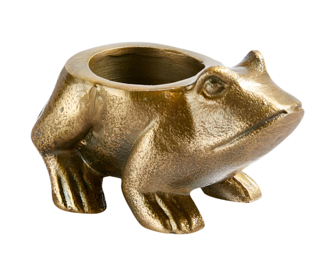 This antique brass aluminum frog tealight holder is perfect for garden parties! Mix and match with our other critter tealight holders and use with LED or regular tealights.