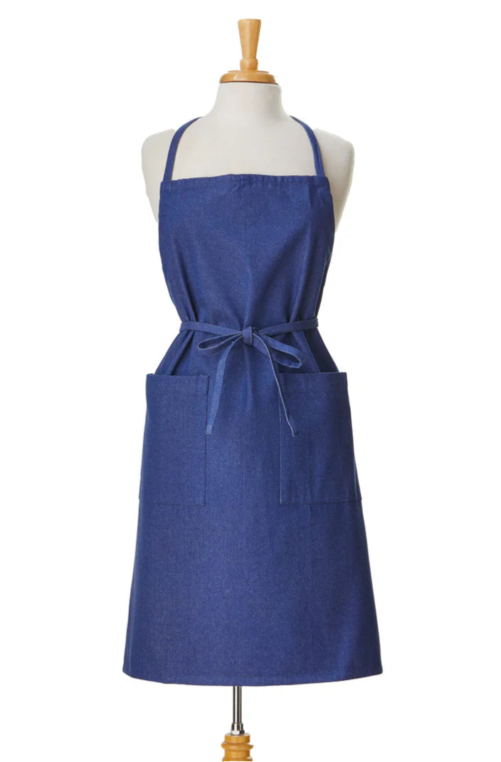 Great for BBQs and for Dad! This beautiful deep blue denim cotton grill apron features two pockets, a utility loop, an adjustable slide-through tie, and a hang loop.