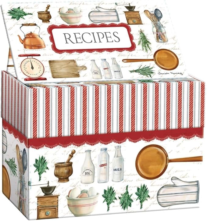 Store and organize your favorite recipes using the Homestead Kitchen Recipe Card Box, designed with artwork by Danielle Murray. Prop your recipe on the easel-style, pop-up cover for easy viewing while you cook.