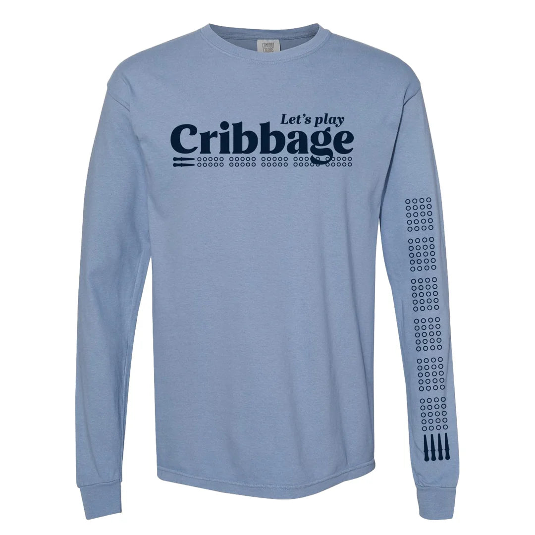 Let's Play Cribbage Long Sleeve- Denim Blue