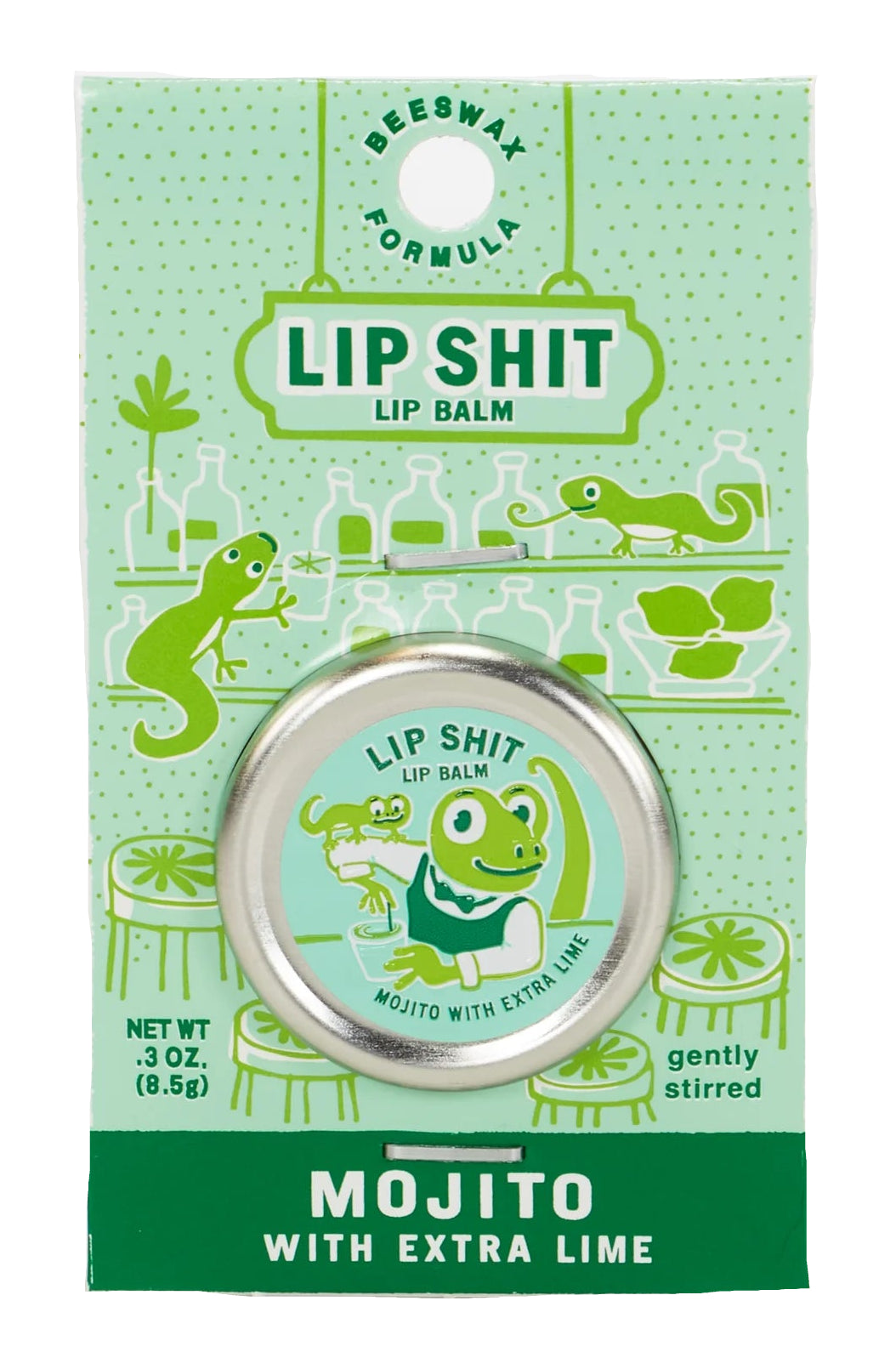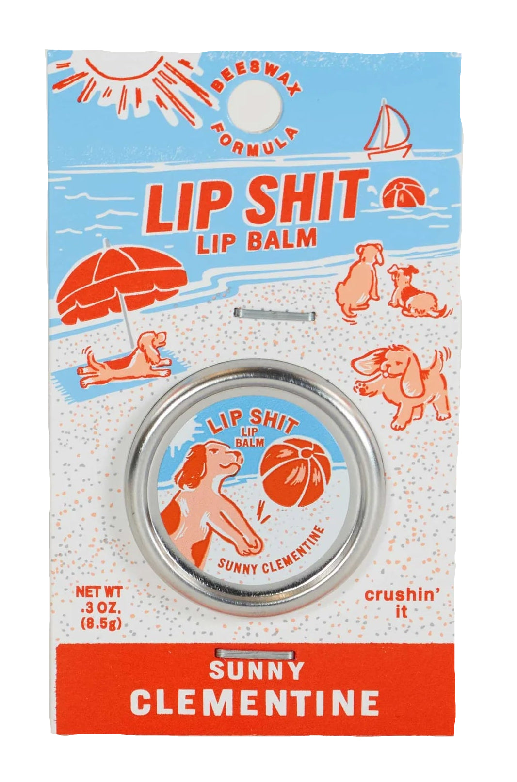 A sassy lip balm that moisturizes with beeswax and vitamin E.