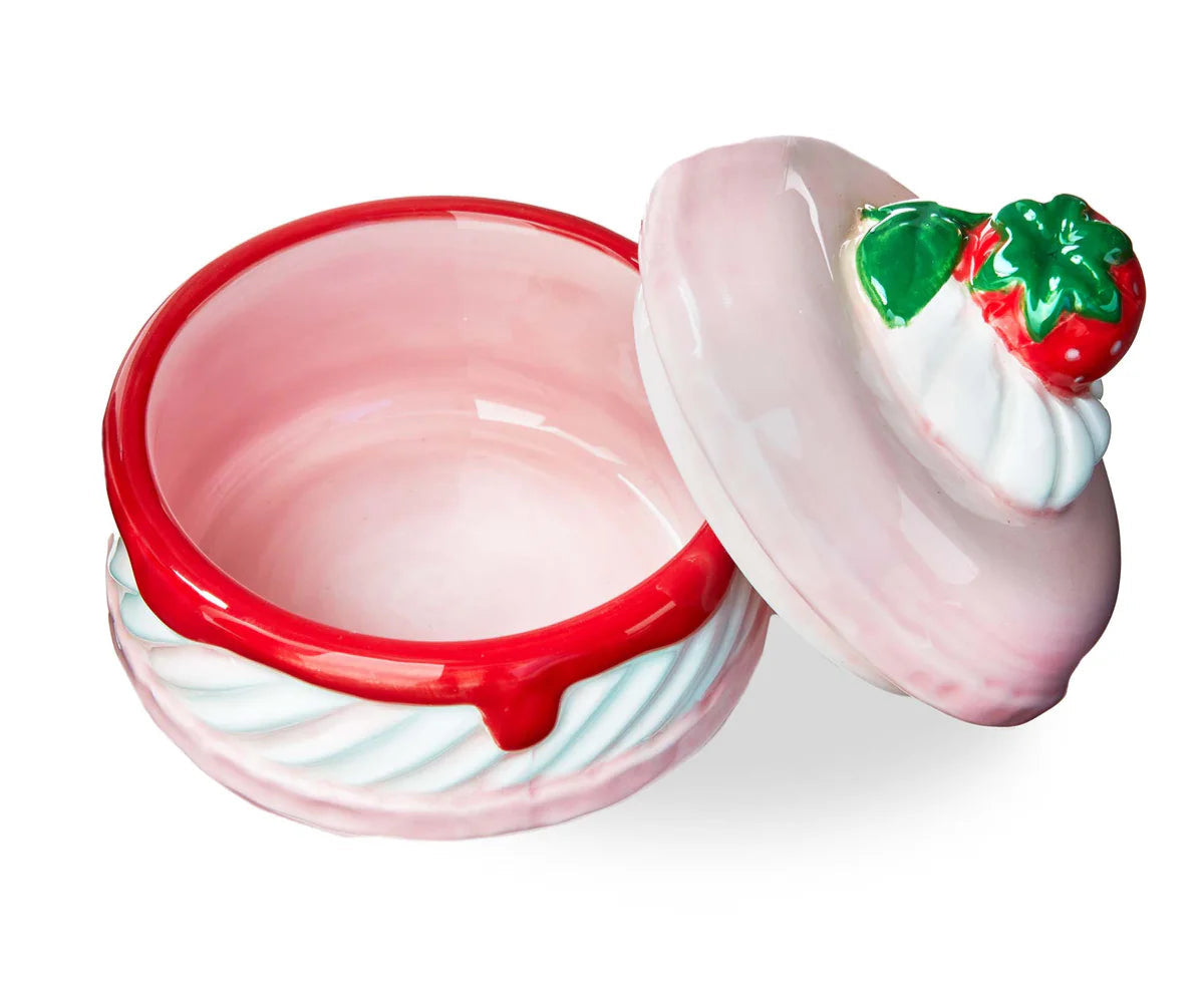 This sweet macaron-shaped trinket dish is perfect for storing small treasures or using as a decorative piece. Made from durable dolomite in a pink color, it's a fun and whimsical addition to any room.
