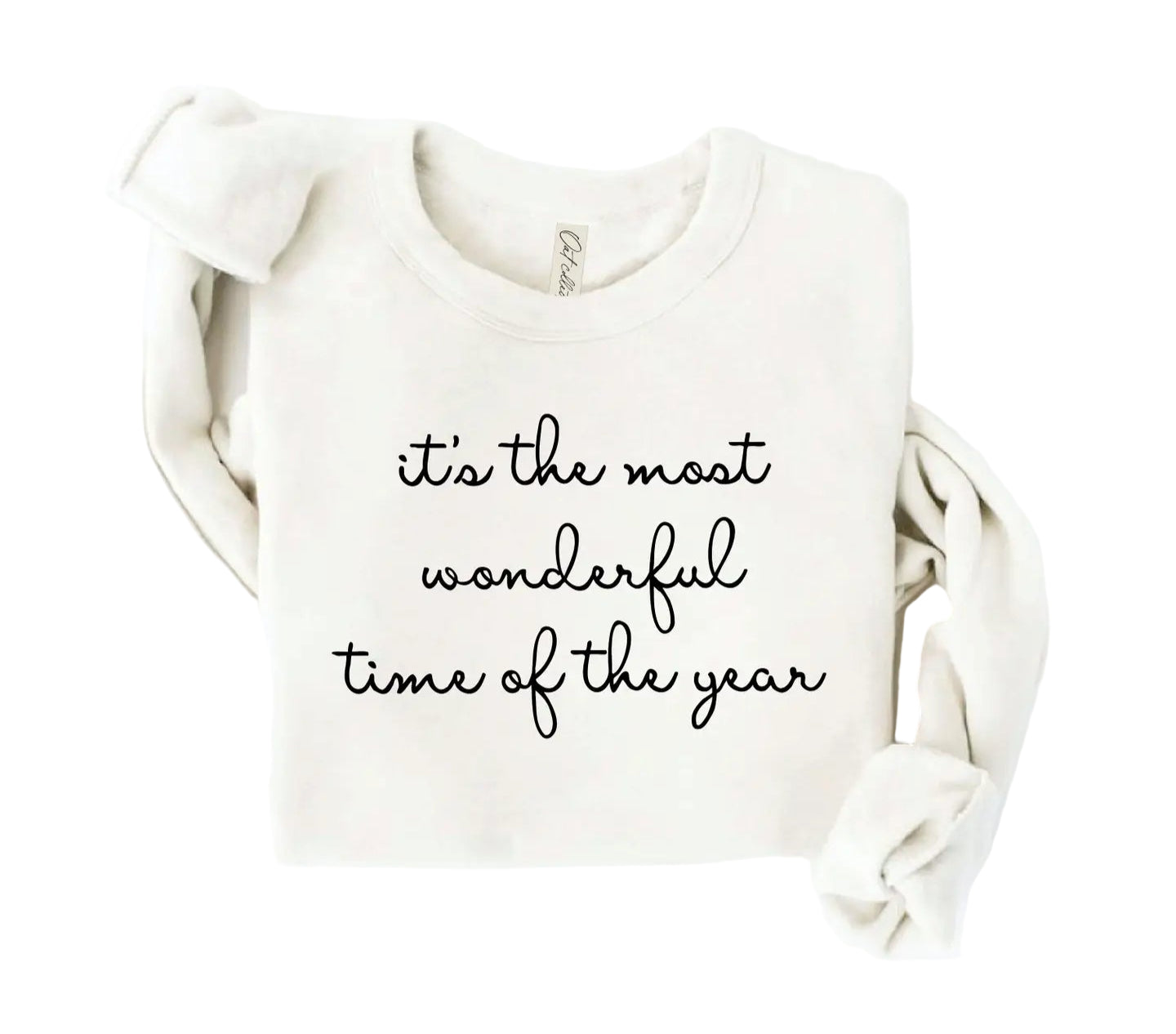IT'S THE MOST WONDERFUL TIME OF THE YEAR Graphic Sweatshirt in vintage white.