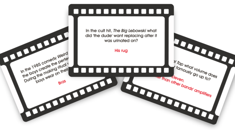 Well get your film fanatic friends round and battle it out with our Retro Movie Trivia Game. Covering all the classics from Indiana Jones to Bridget Jones.