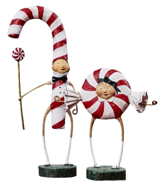 Patsy and Peppie like to keep it fresh in their minty holiday attire! Collecting both would make a sweet gift or addition to your decor. Original folk art designed by Lori Mitchell.