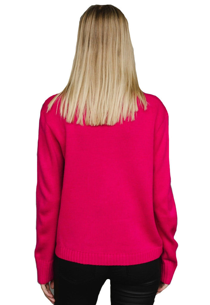 This pink graphic knit sweater is perfect to wear when you're feelin' festive this holiday season! Makes a fun gift!