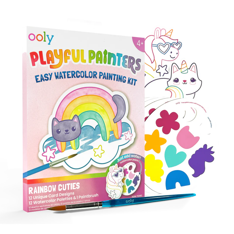 Let creativity shine with the Playful Painters Easy Watercolor Painting Kit - Rainbow Cuties!
