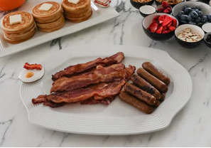 Elegant and refined! The stoneware pretty platter’s artful corners and pinstriped edges make every gathering feel effortlessly stylish!