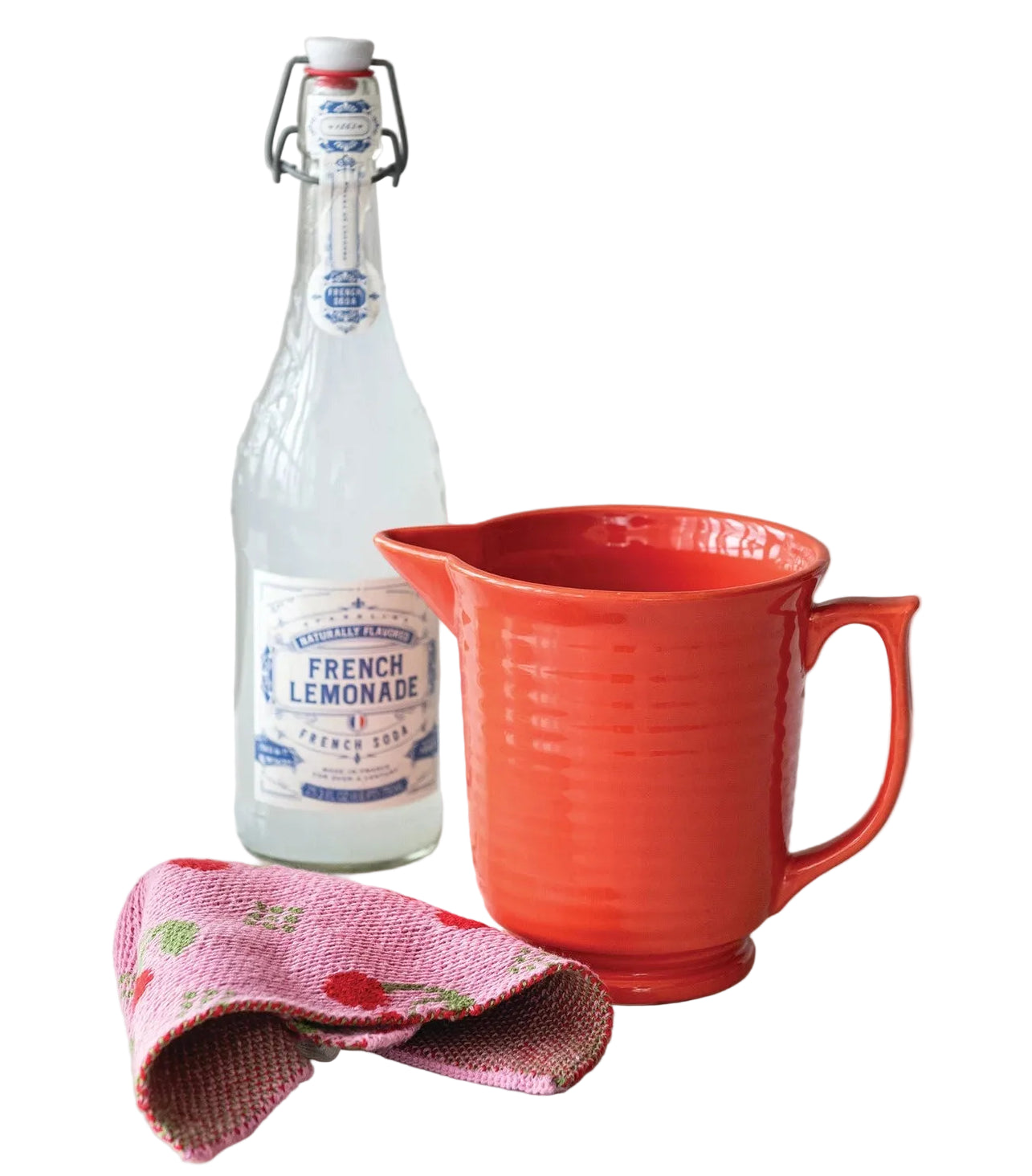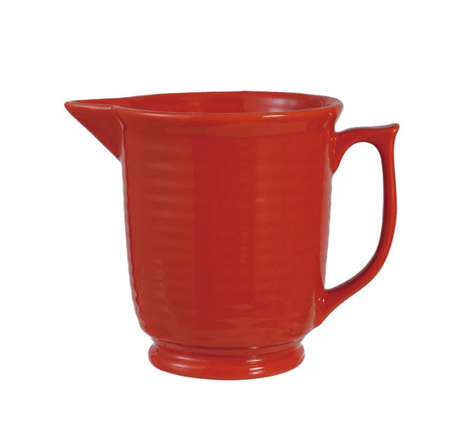 This orange quart stoneware ribbed pitcher is such a sweet serving piece for your kitchen and table!