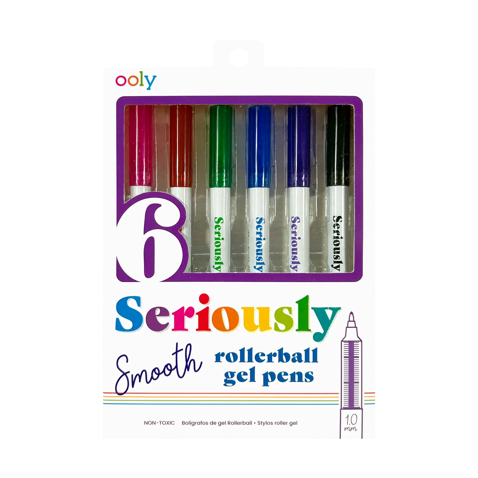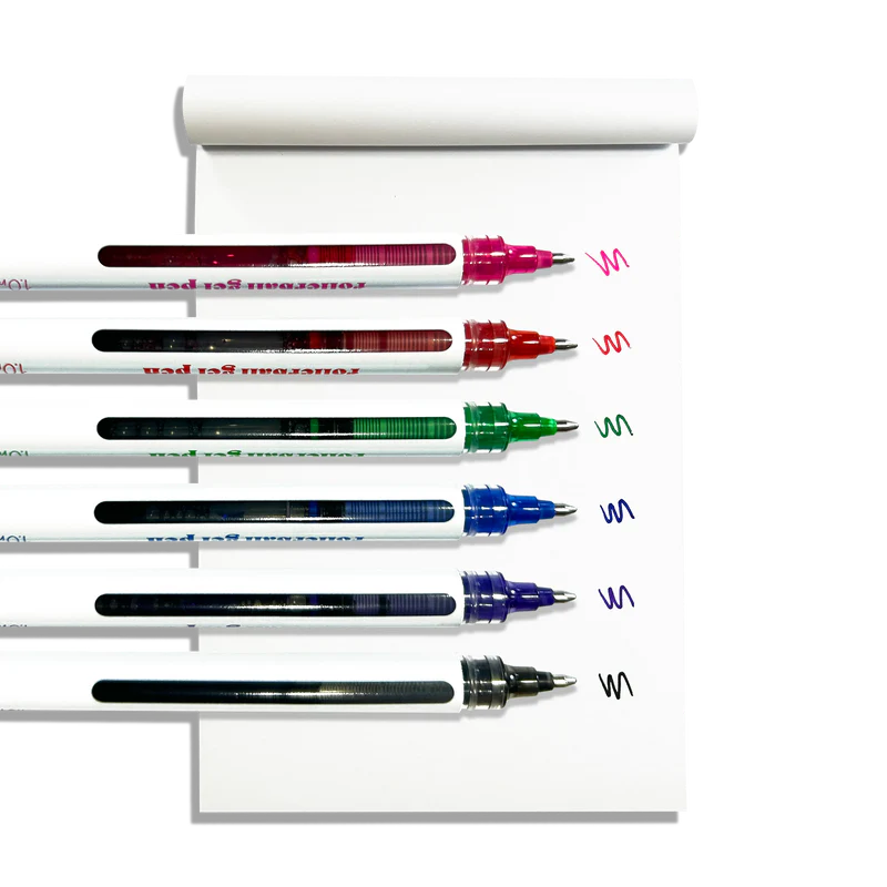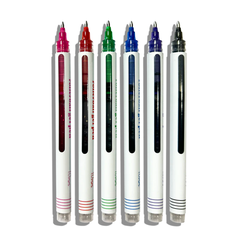 A set of 6 rollerball pens with smooth-flowing gel ink for effortless writing with consistent ink flow!