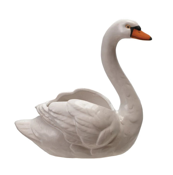 This stoneware swan planter is a great conversation piece in your living spaces!