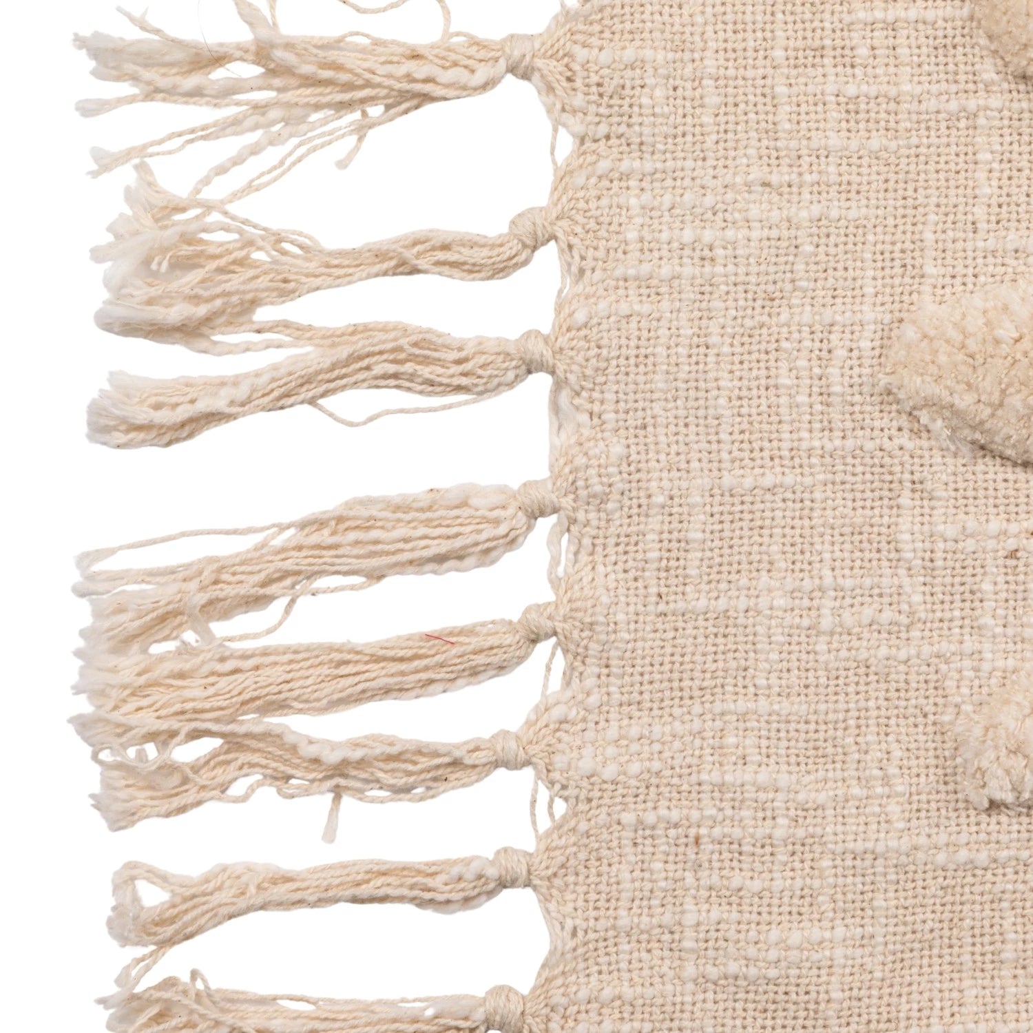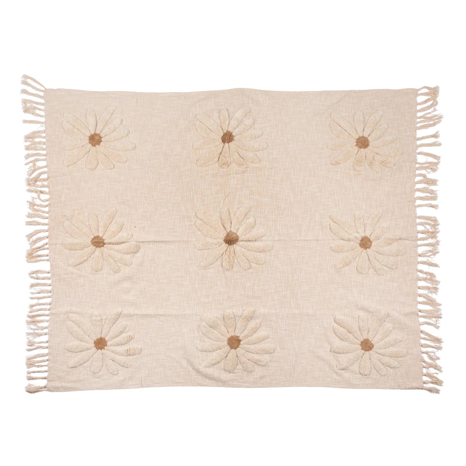 60"L x 50"W Cotton Slub Throw w/ Tufted Flowers & Fringe