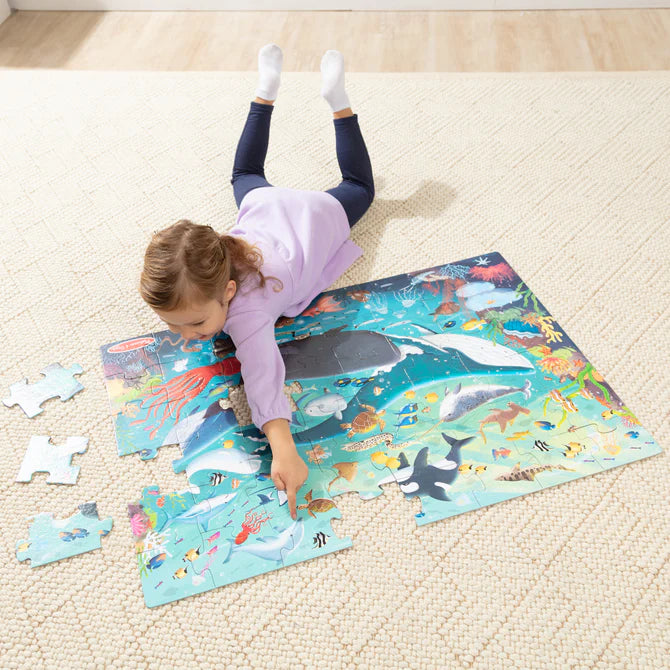 Dive into an underwater world full of ocean life with this 48-piece jumbo floor puzzle that forms a 3 x 2 ft scene when complete. The picture focuses on sea mammals and other marine animals, giving kids plenty to point out, name, and talk about as they assemble the pieces.