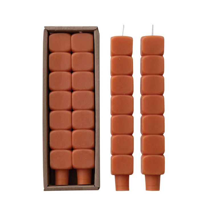 - 8"H Unscented Stacked Blocks Shaped Taper Candles in Box