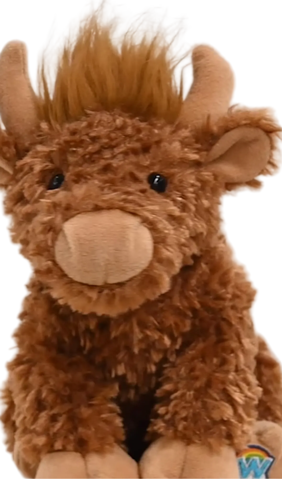 The Highland Cow is a super-soft plush with cozy brown fur and a relaxed expression that perfectly captures its sweet personality.